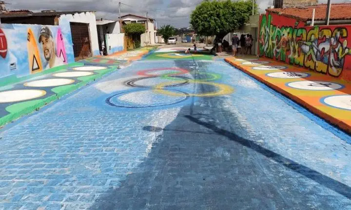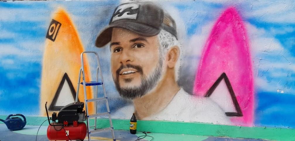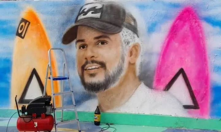O artista plástico Wellington Potiguar pintou um mural em homenagem ao surfista Ítalo Ferreira, que representa o Brasil nas Olimpíadas de Tóquio. A ilustração fica em Macaíba, na Grande Natal.