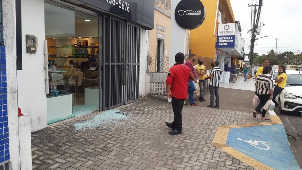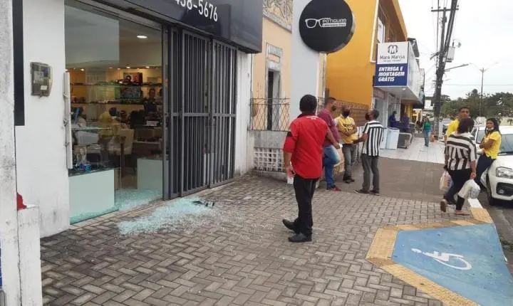 Após os disparos, os bandidos fugiram com arma do militar e não foram localizados. Os tiros também estilhaçaram a porta de vidro da ótica.
