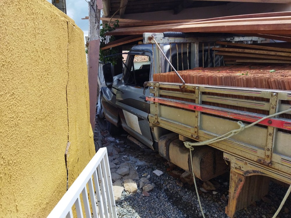 O caminhão ainda atingiu um carro que estava estacionado na garagem da casa.