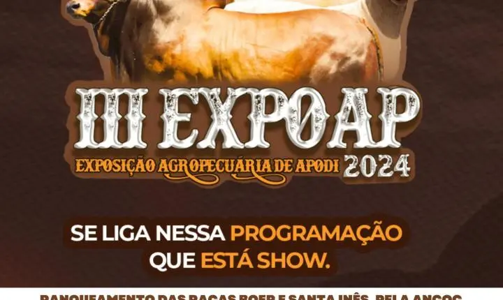 A Prefeitura de Apodi, em parceria com o Governo do Estado e a Associação Norte-riograndense de Criadores de Ovinos e Caprinos (ANCOC), realizará a terceira edição da Exposição Agropecuária de Apodi - EXPOAP, de 18 a 21 deste mês.