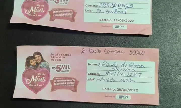 Os cupons da campanha foram distribuídos nos estabelecimentos filiados à CDL, e a cada compra no valor de R$ 20,00 o consumidor recebe um cupom e torna-se apto a concorrer aos prêmios.