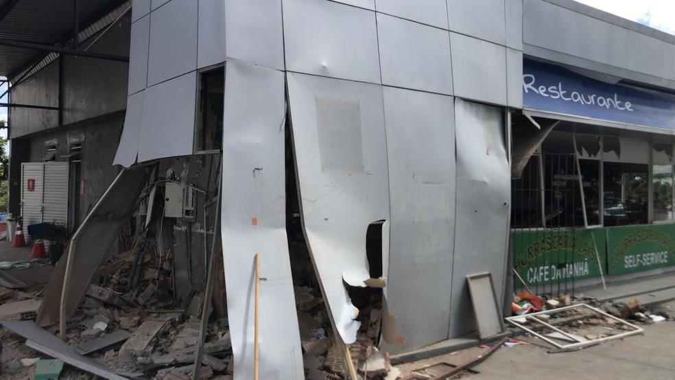 Cerca de oito criminosos fortemente armados realizaram uma série de explosões e abriram o cofre de um posto de combustíveis na madrugada desta quarta-feira (6) na Reta Tabajara, em Macaíba, na região metropolitana de Natal. Parte do prédio ficou destruída.