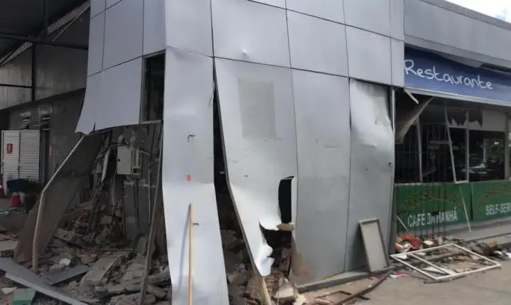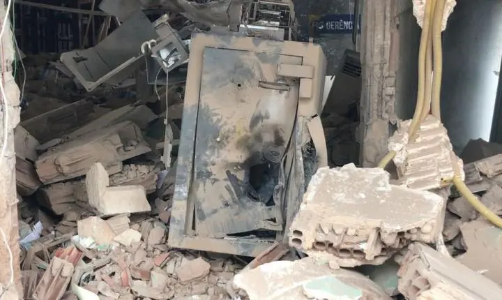 Em seguida, os bandidos realizaram quatro explosões, para acessar o setor administrativo e o cofre do estabelecimento.