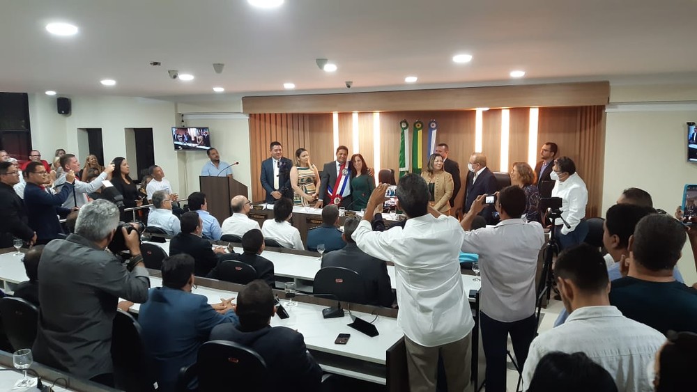 A cerimônia de posse aconteceu na Câmara de Vereadores. Centenas de pessoas lotaram as galerias e corredores do prédio.