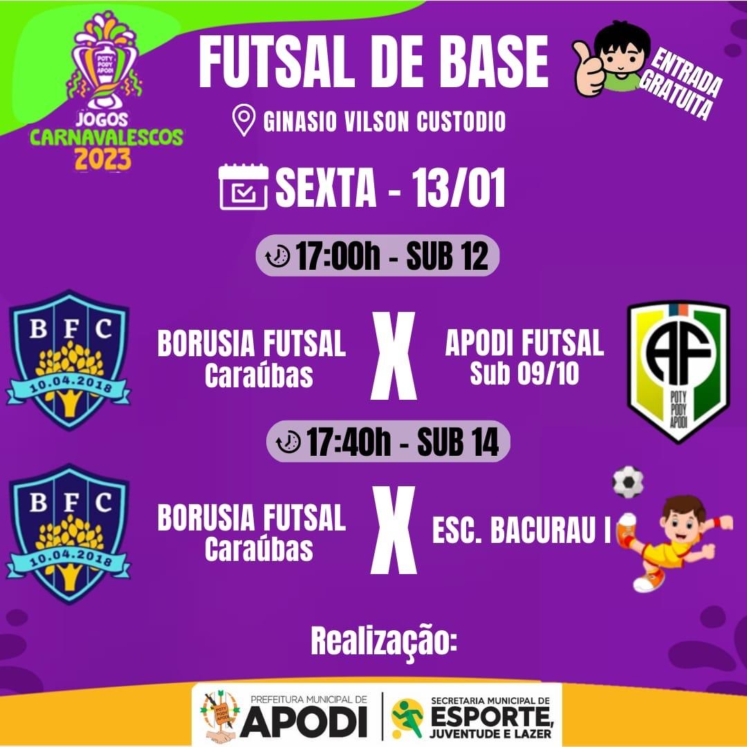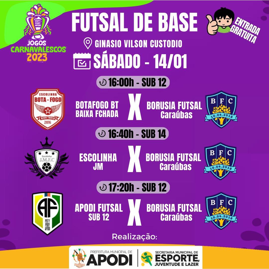 A Prefeitura de Apodi, por meio da Secretaria Municipal de Esportes, realizará os Jogos Carnavalescos edição 2023 tiveram início nesta Sexta(13), e seguem com a programação até 8 de fevereiro, nas modalidades: Futsal (Divisões A e B), Futsal de base, Futsal master (35+) e Handebol. Com a premiação de R$ 35 mil.
