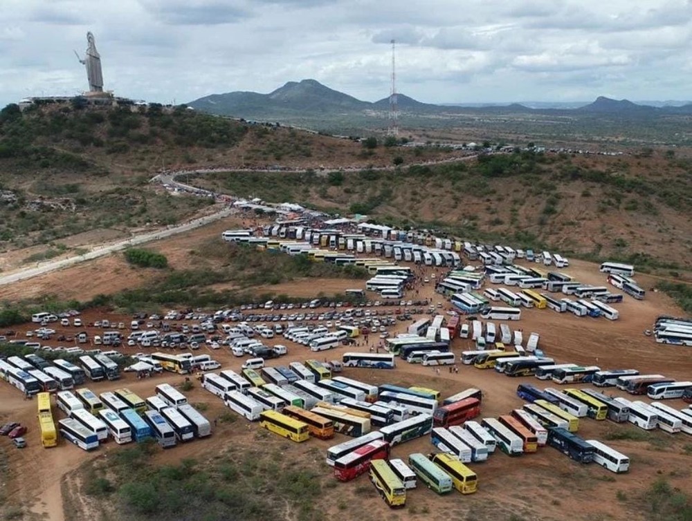 Milhares de fiéis lotaram o Santuário de Santa Rita de Cássia neste domingo (22). Caravanas de várias regiões do Rio Grande do Norte e de outros estados se deslocaram até o município de Santa Cruz, onde fica a estátua da santa. Mais de 200 ônibus de romeiros puderam ser registrados pela manhã.