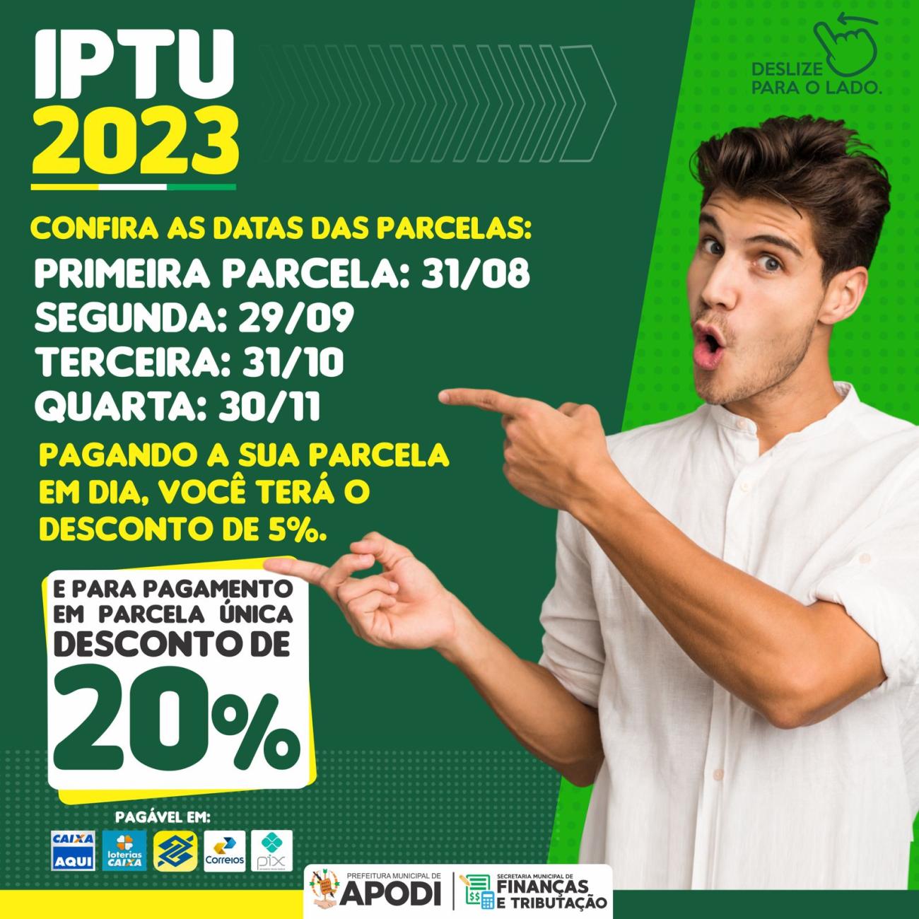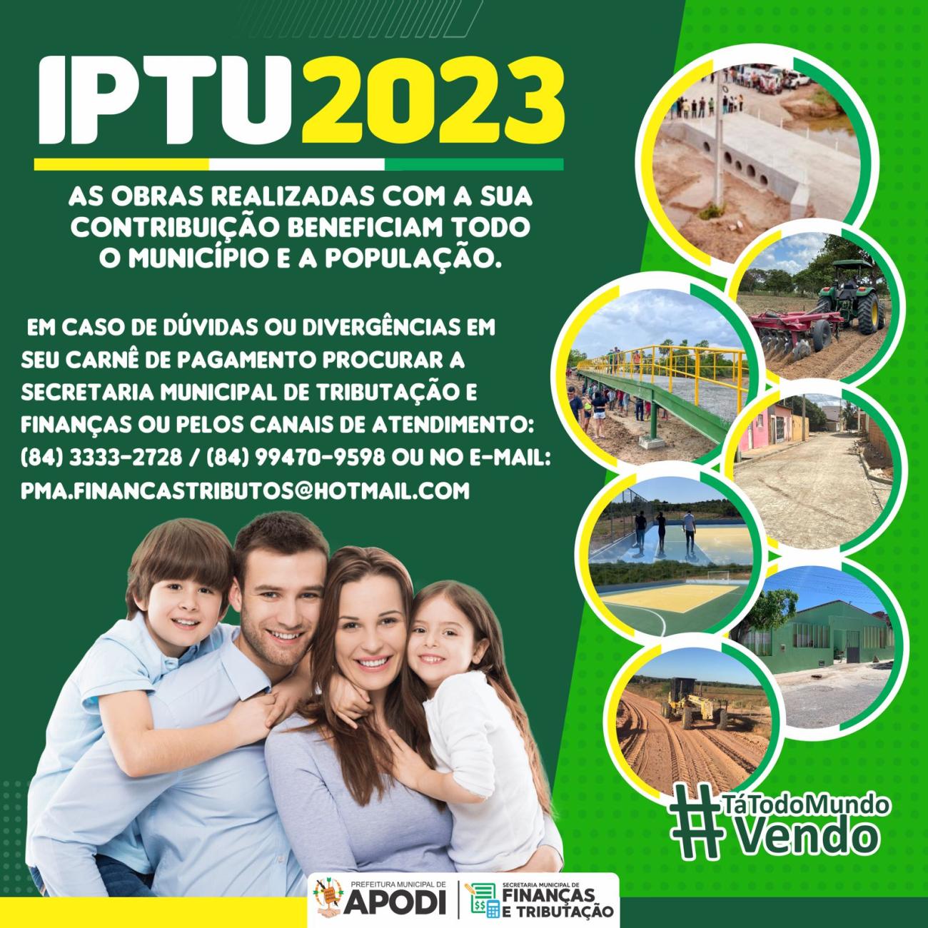 Pague o seu IPTU em dia e faça de Apodi uma cidade cada vez melhor, com obras realizadas com a sua contribuição beneficiando o município e a população.