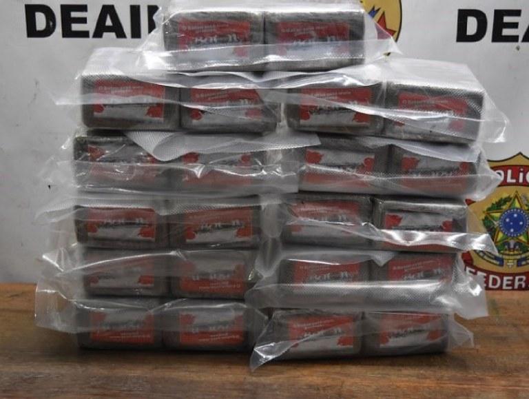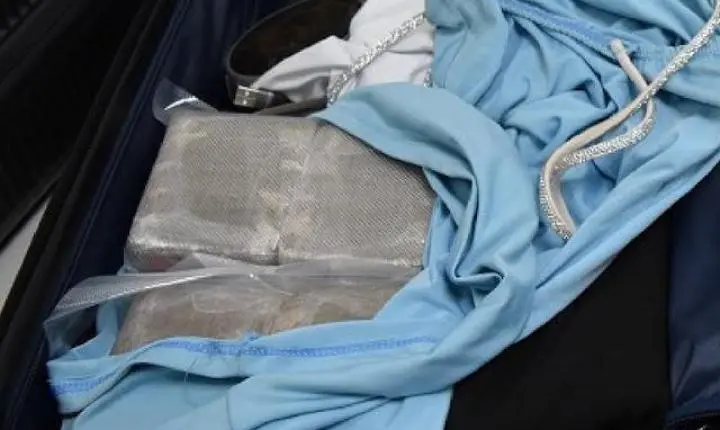 Da mala suspeita, os peritos federais retiraram onze quilos de haxixe, prensados na forma de 110 tabletes. Diante dos fatos, a suspeita recepeu voz de prisão.