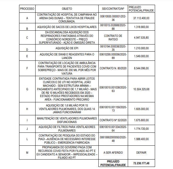 O prejuízo potencial de contratos do Governo Fátima durante a pandemia chega a R$ 72 milhões, segundo levantamento feito pelos deputados estaduais para justificar o pedido de abertura da CPI.