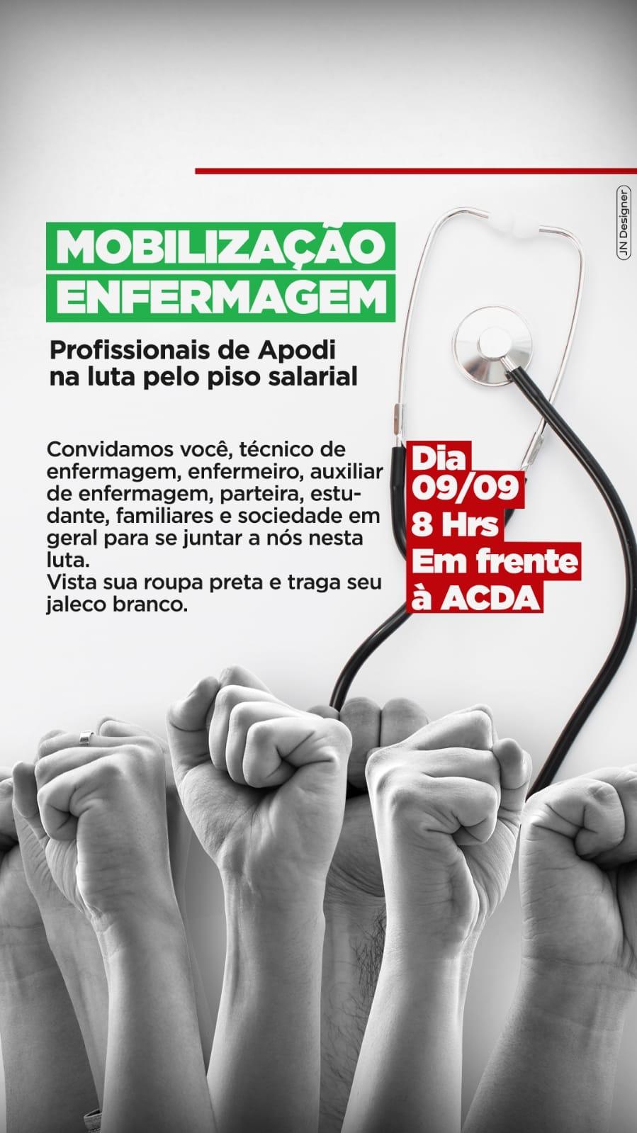 Nesta Sexta(09), será realizada em Apodi uma mobilização de profissionais da enfermagem em protesto contra a negação do reajuste do piso salarial para trabalhadores da área.