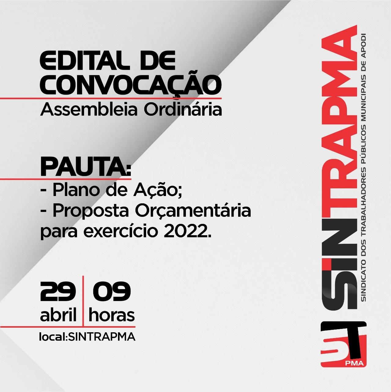 O Sindicato dos Trabalhadores Públicos Municipais de Apodi faz convocação para assembleia ordinária da entidade desta Sexta (29).