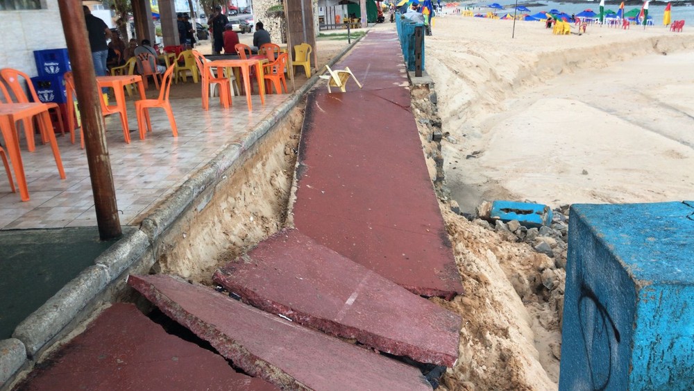 O trecho de uma ciclovia que faz parte do calçadão da Praia do Meio, na Zona Leste de Natal, desabou na tarde de sábado (2). Segundo os comerciantes que trabalham na região, ninguém se feriu.